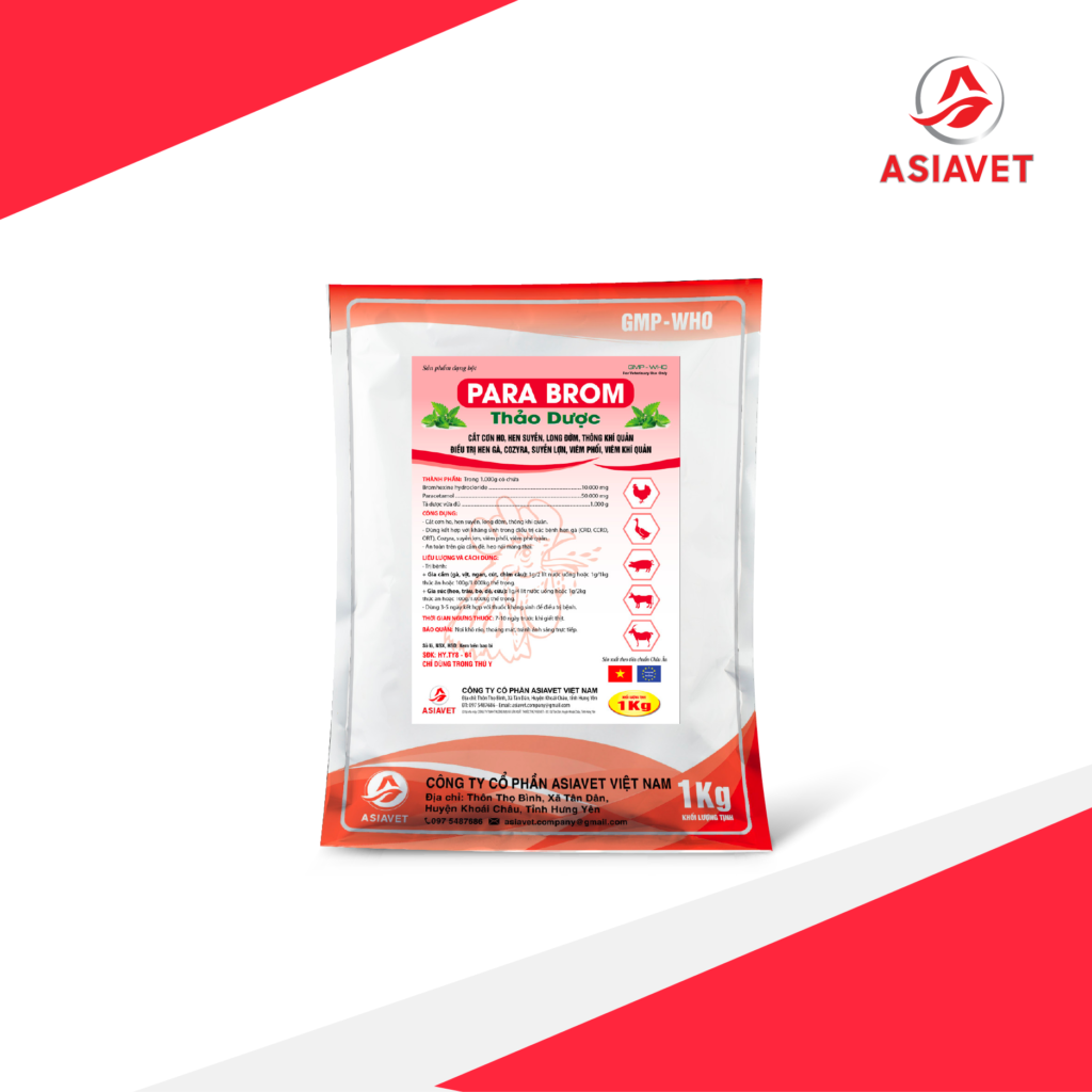 Bột thảo dược Para Brom 1kg giúp cắt cơn ho, hen suyễn, long đờm, thông khí quản, điều trị hen gà, Cozyra, suyễn lợn, viêm phổi, viêm phế quản.