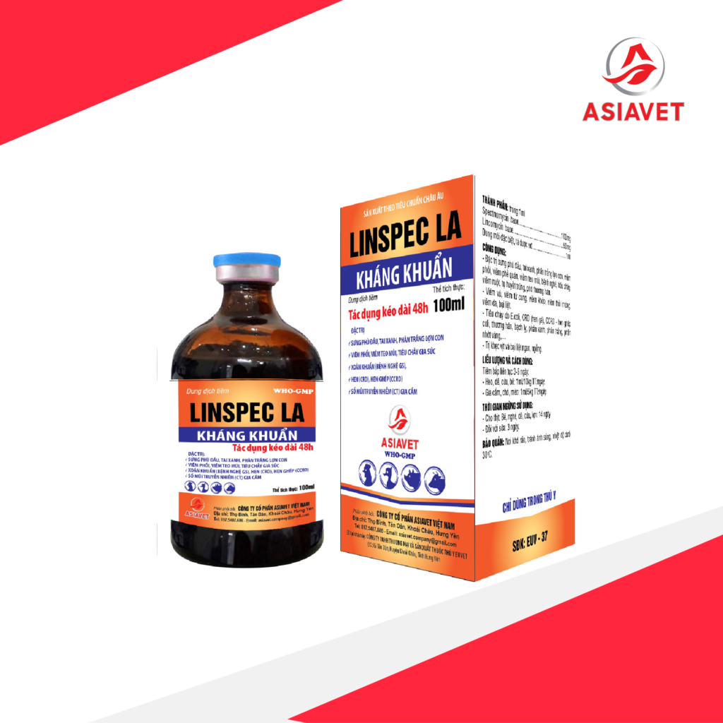 Dung dịch tiêm kháng khuẩn LINSPEC LA là sản phẩm giúp kháng khuẩn, trị bệnh hiệu quả cho gia súc, gia cầm. Sản phẩm đang được nhiều bà con chăn nuôi lựa chọn. Để đặt mua sản phẩm, xin vui lòng liên hệ: